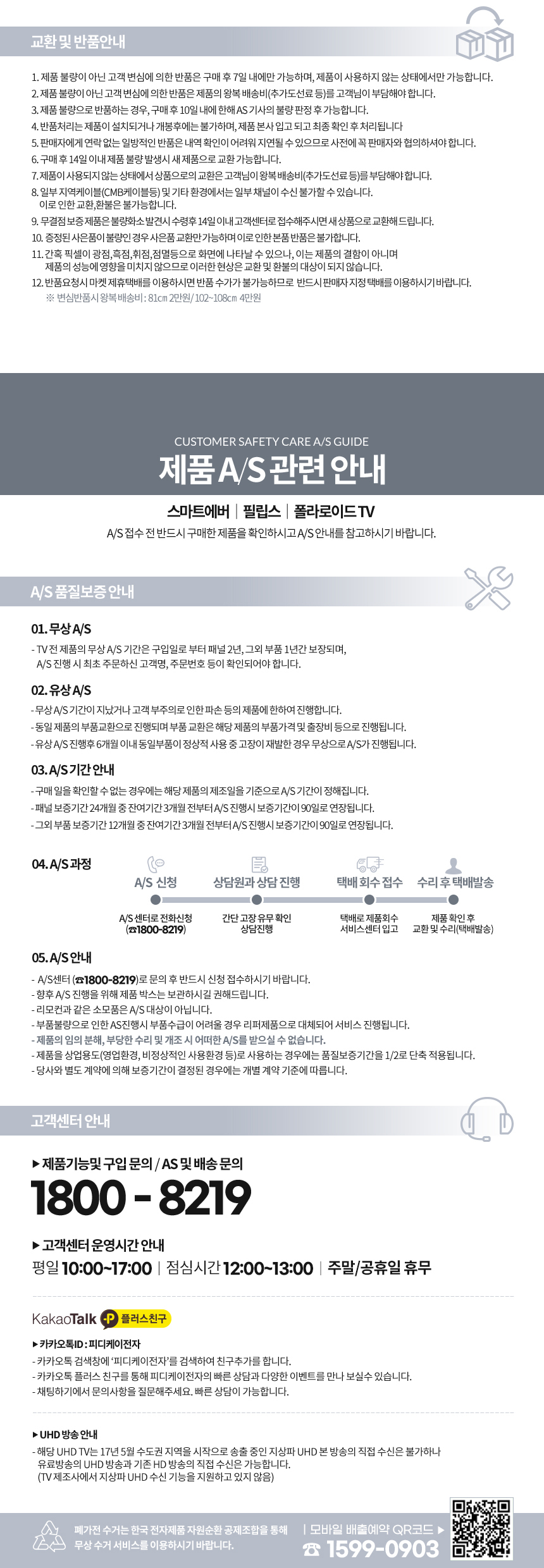 - 수입제품의 특성상 (주)피디케이전자를 통해 구매하시 않은 제품(해외직구,병행수입등)은 A/S가 불가합니다.
