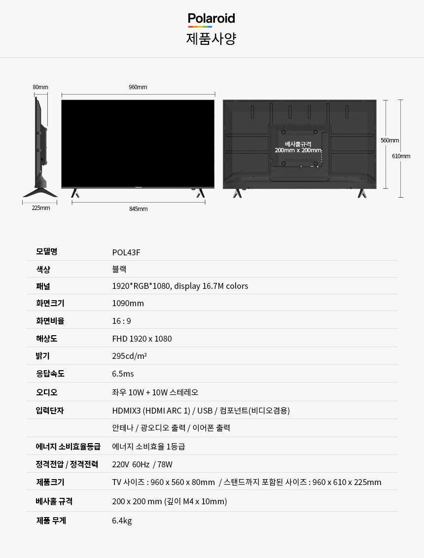 | 품명 및 모델명 | POL43F | ||