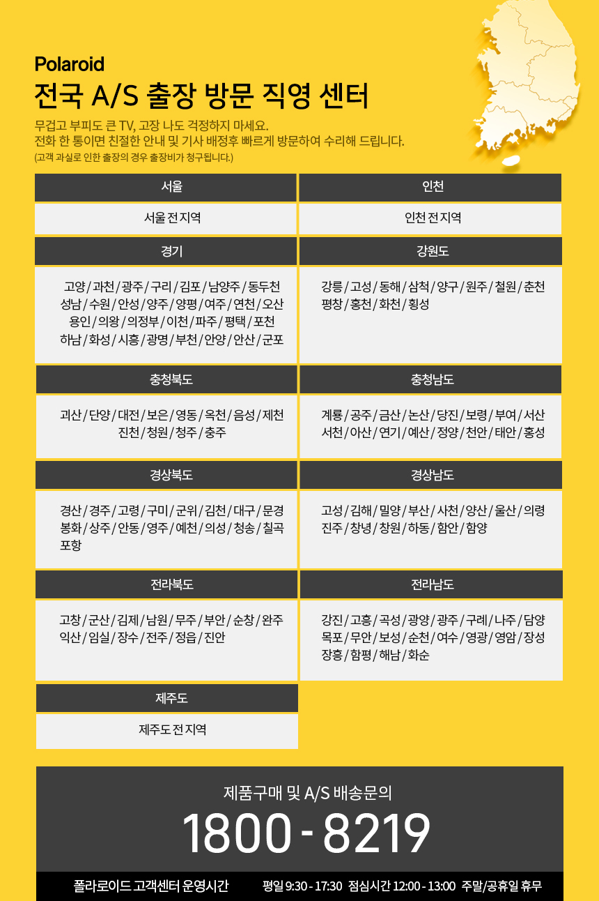 - 단 외부 기기의 연결이나 기타 문의로 인한 기사 방문 요청은 별도의 비용이 발생할 수 있습니다.