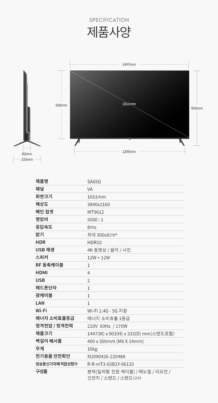 | 품명 및 모델명 | SA65G | ||