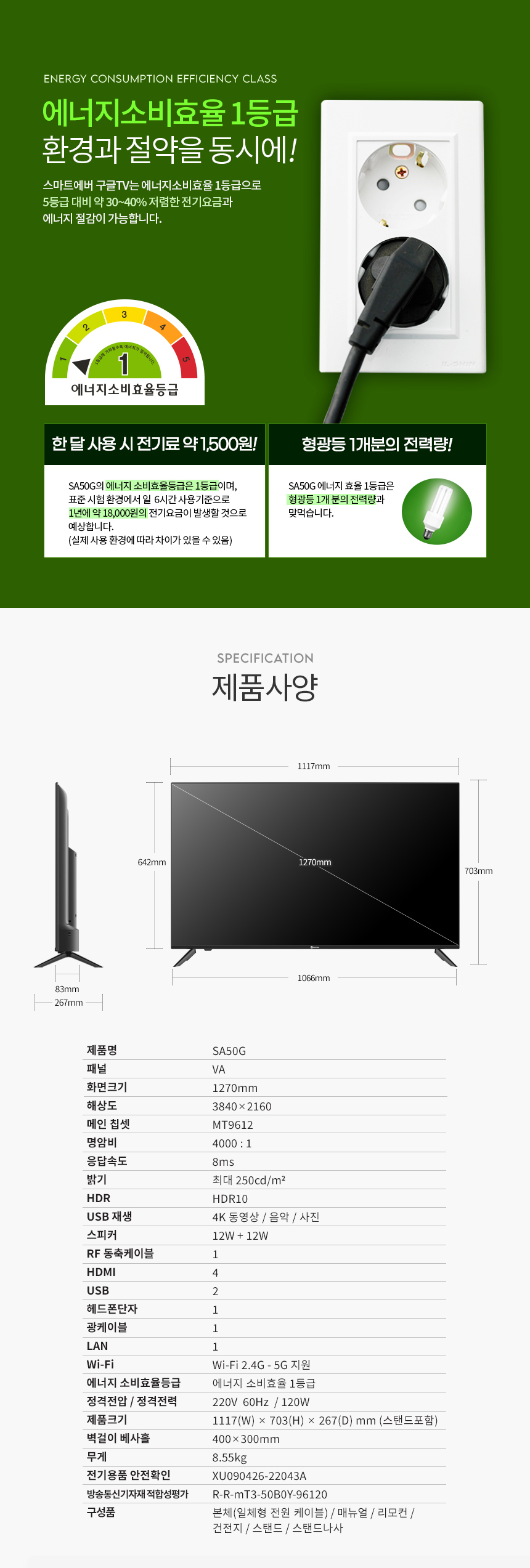 | 품명 및 모델명 | 구글인증 안드로이드 스마트TV SA50G | ||